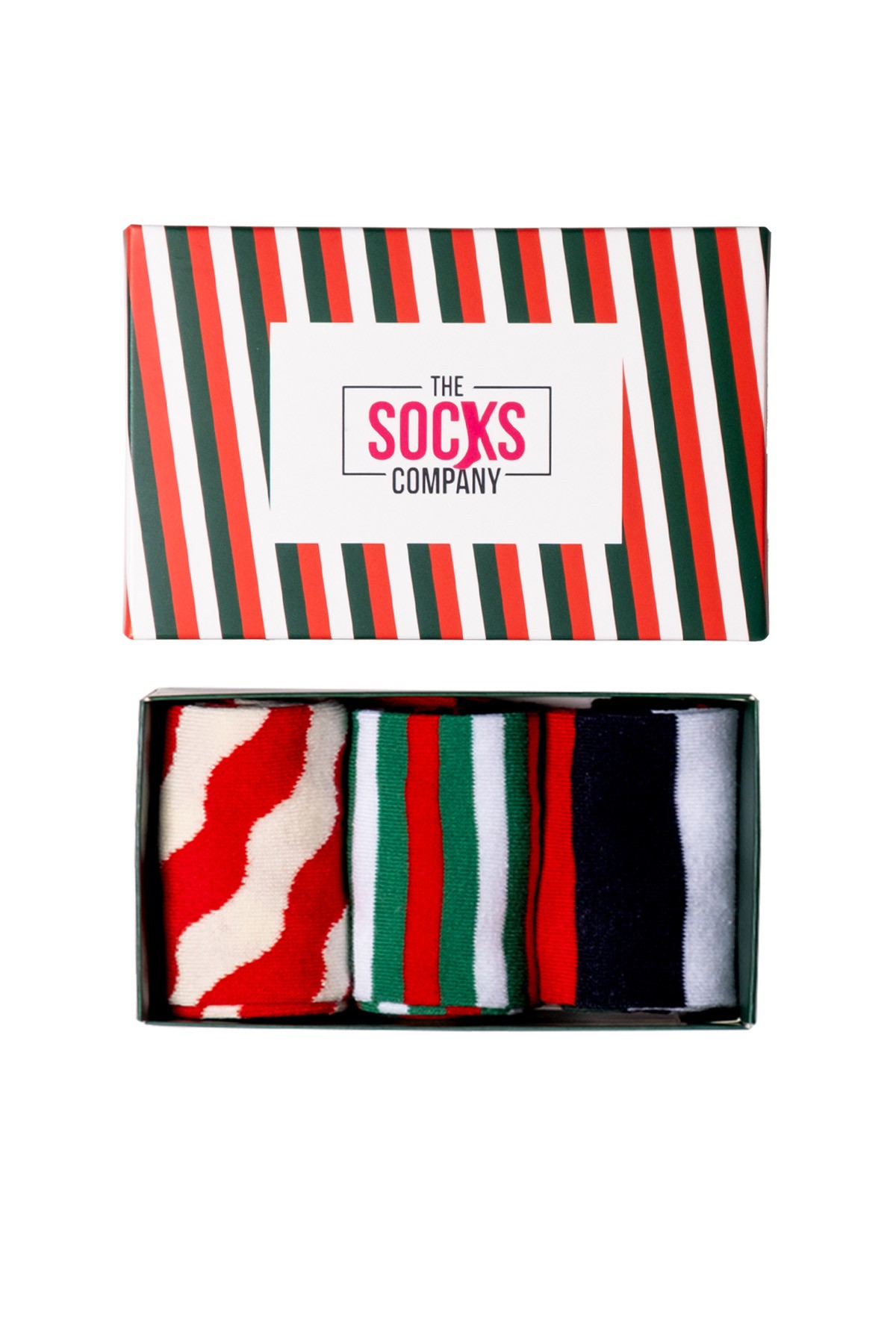 Sıradan şeritli çoraplardan sıkıldıysan yeni yıla modern tasarımlı bu eğlenceli çoraplar ile girmeye ne dersin? Yılbaşı renklerinin en canlı tonları ile şeritlerin estetiğini karıştırıp kutusu ile uyumlu bir set hazırladık. Bu çorap seti ile ister kendin ister sevdiklerin için yılbaşı eğlencesini üçe katla!